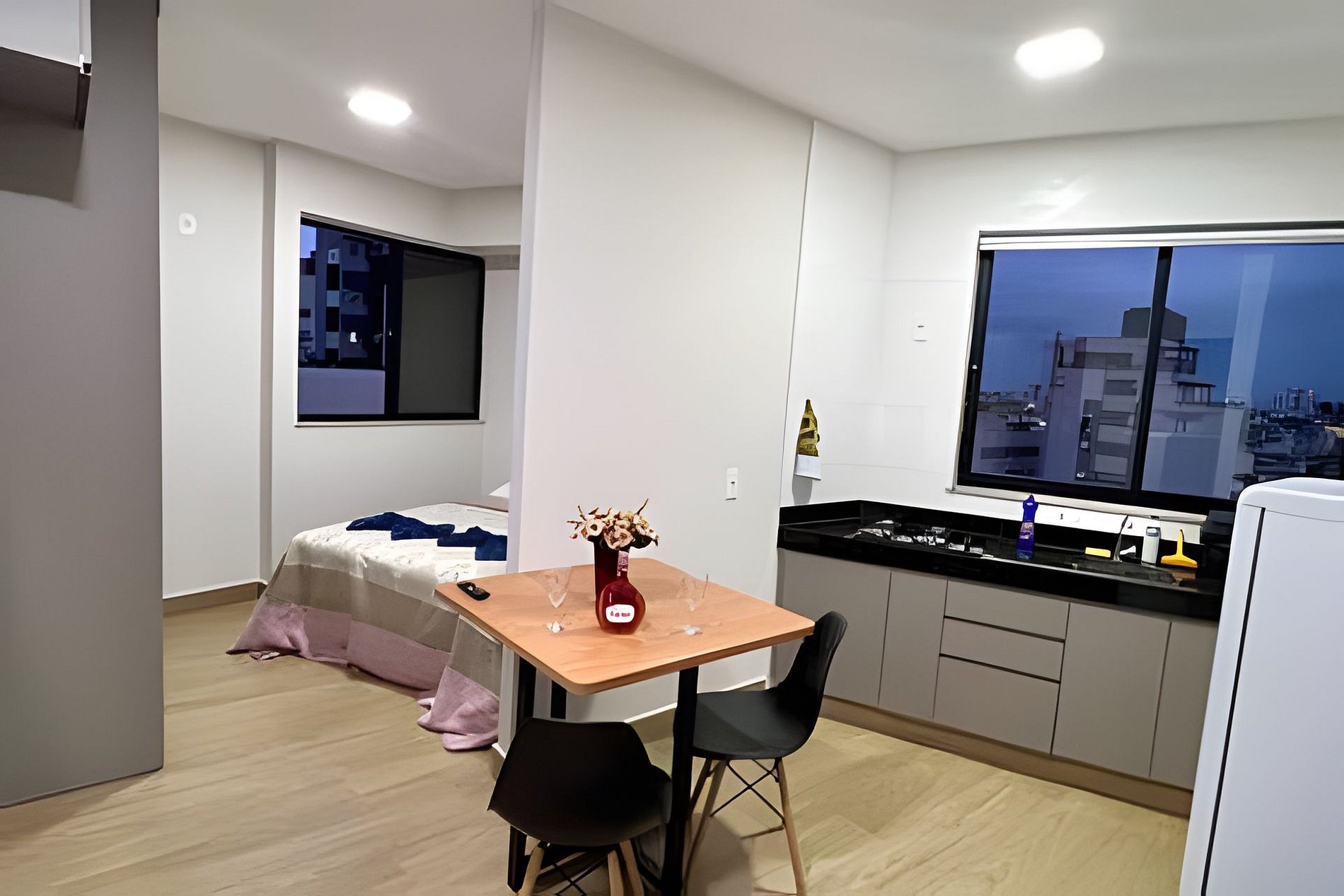 Bem-vindo ao nosso novo apartamento estúdio no coração da cidade! Com uma localização privilegiada, este espaço é perfeito para quem deseja explorar os pontos turísticos da região. Prédio novo e de esquina em frente ao mercado central de Divinópolis, possui elevador, garagem para veículos de pequeno e médio porte (custo extra R$30,00 à diária) e muita segurança. Com duas janelas, o apartamento é bem iluminado e arejado, garantindo um ambiente agradável e acolhedor.