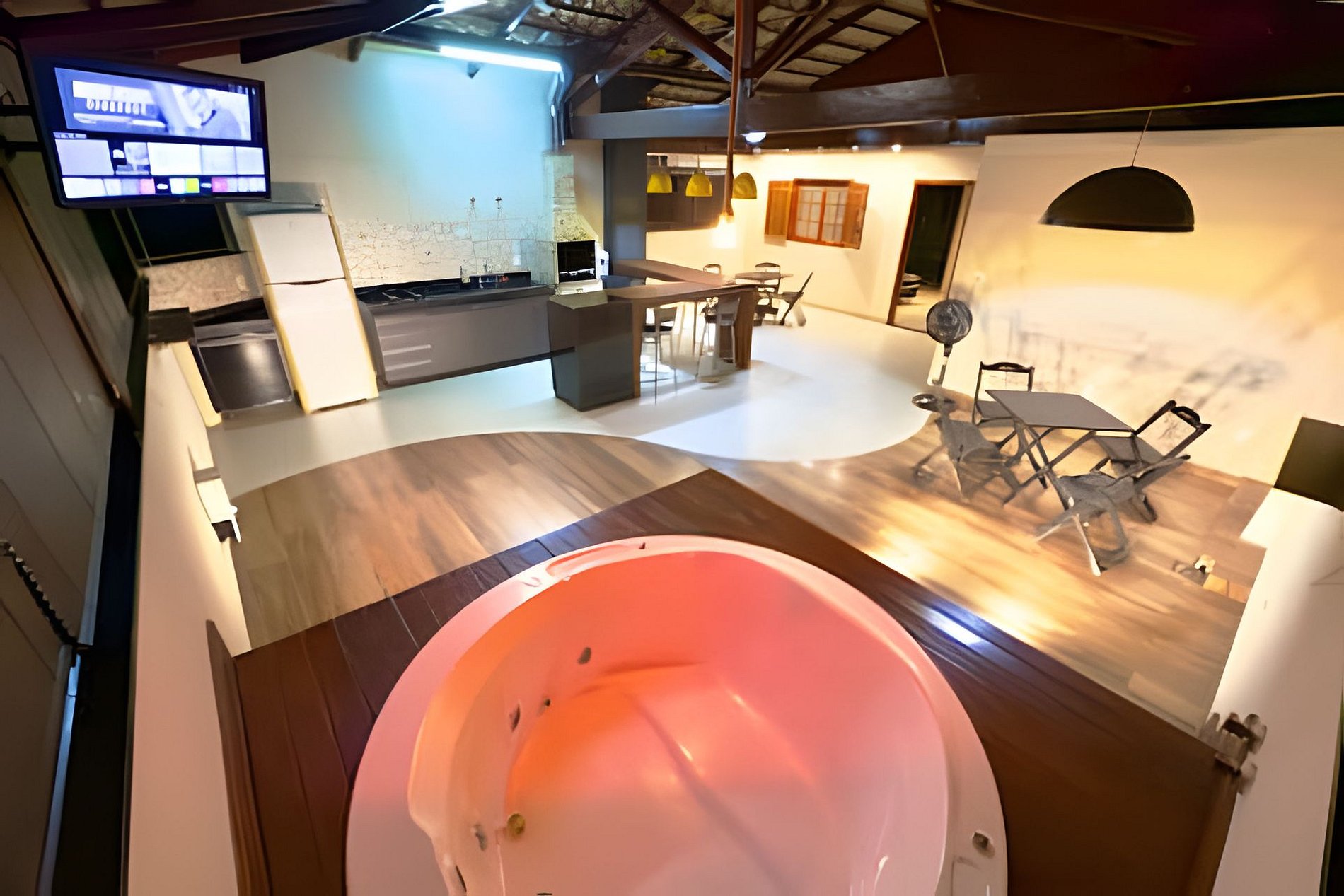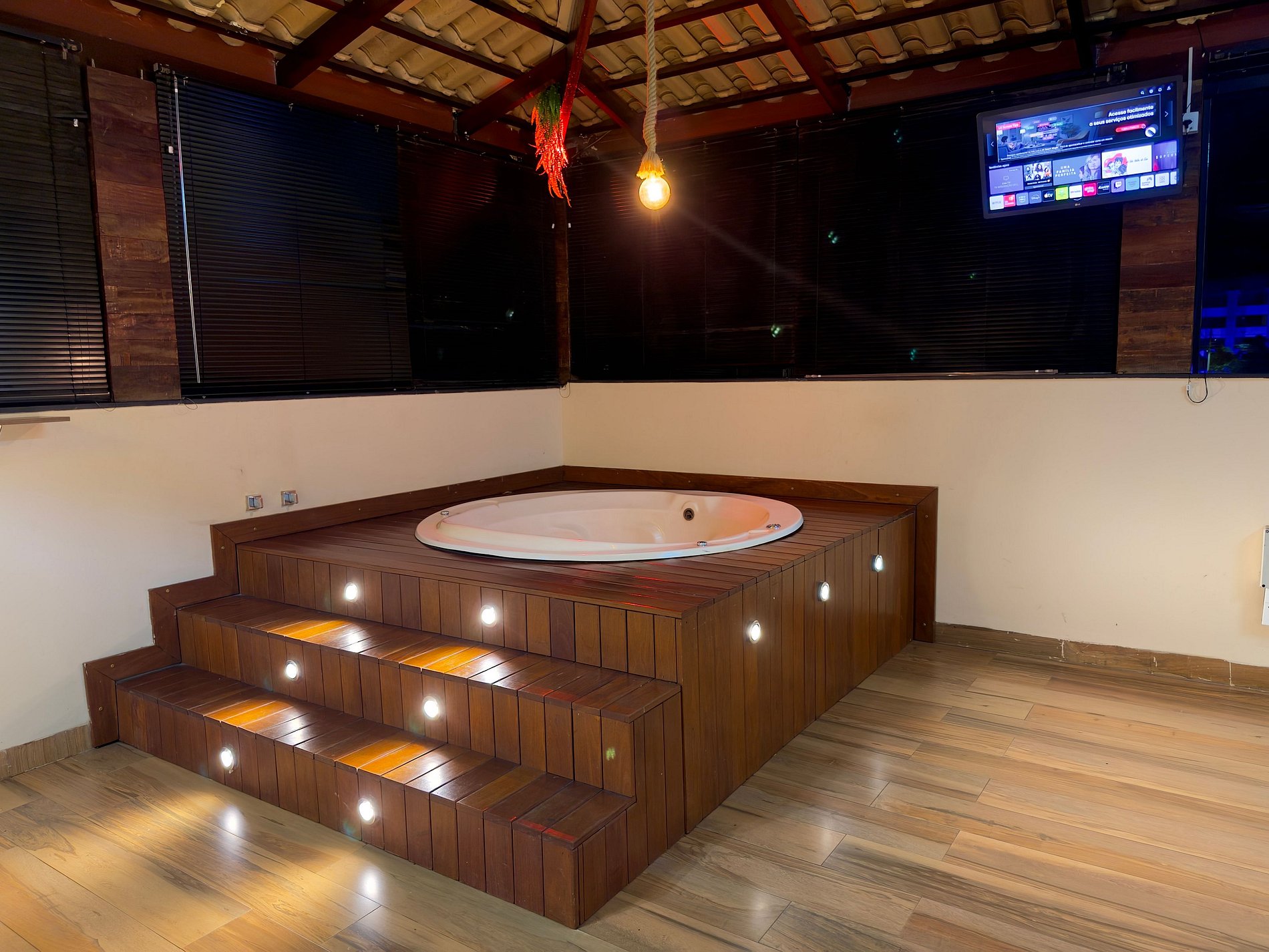 Banheira de hidromassagem 2 a 3 lugares com aquecimento solar ou elétrico.